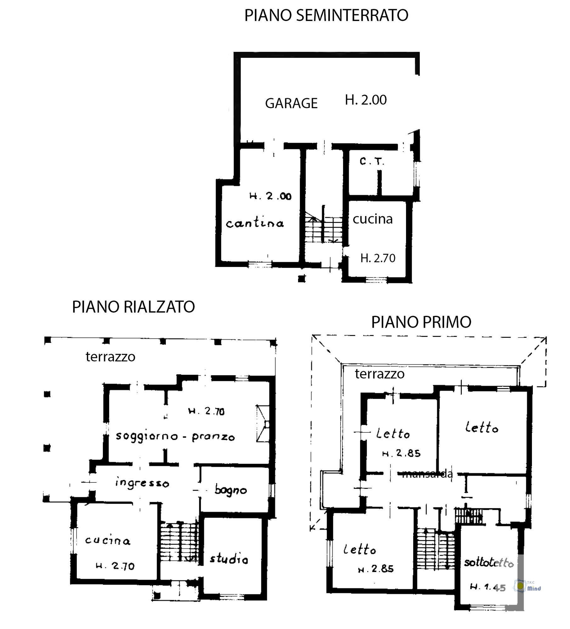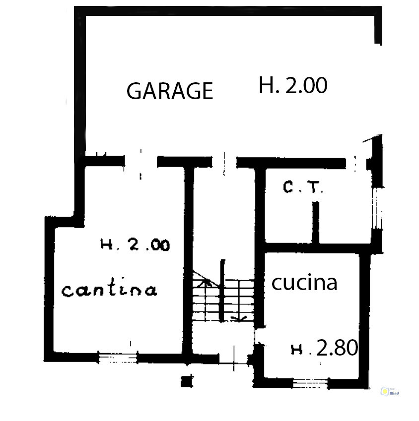 -Piano Seminterrato: Garage di circa 39 mq, ripostiglio, locale tecnico con caldaia.