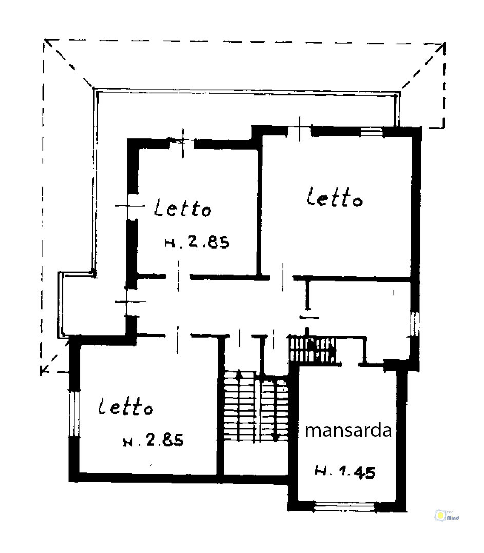 -Primo Piano: 4 grandi camere da letto, bagno, corridoio, mansarda, balcone e una grande terrazza ristrutturata.