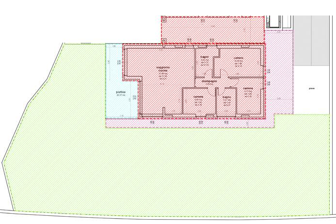 Internamente l'immobile sarà composto da ampio ingresso comune coperto, ampio soggiorno con accesso al portico ed al giardino, cucina com accesso al portico e al giardino, camera padronale con cabina armadio, 2 ulteriori camere, 2 bagni finestrati. Tutti gli ambienti della casa accedono al giardino.