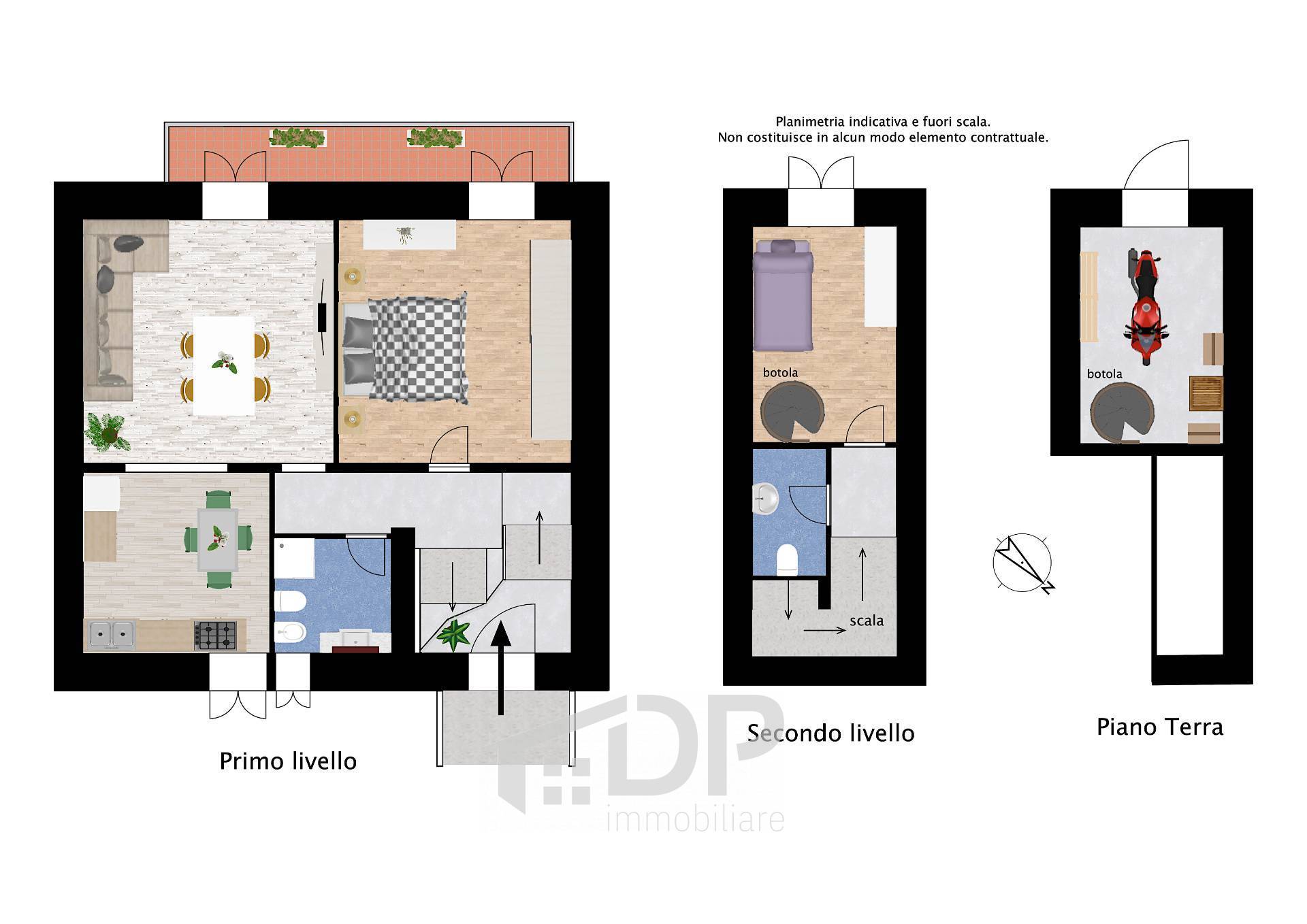 Qui si trova la botola che porta al sottostante deposito/ripostiglio, di circa 14 mq, a cui accedere dopo aver installato una scala a chiocciola: un comodo spazio, con entrata anche dal piano strada della via Provinciale.