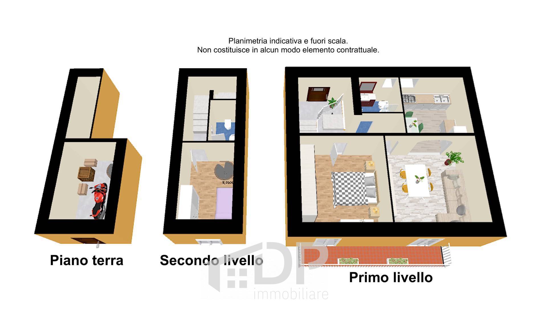 Scendendo tramite le scale interne, si accede ad un vano allestito come bagno di servizio e allo studio, con finestra, che può essere usato anche come cameretta.