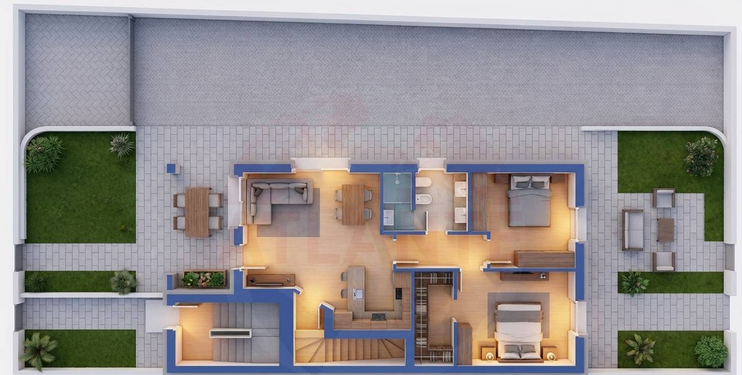 N.B. Le immagini 3D di arredo interno, sono ad esclusivo scopo illustrativo al fine di dare delle ipotesi di utilizzo degli spazi.