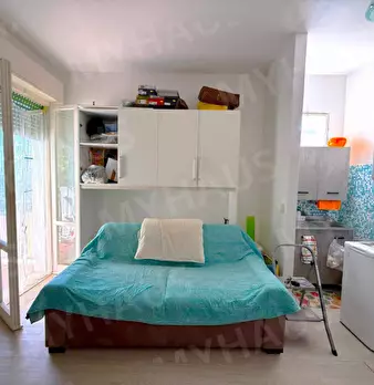 L’abitazione è stata studiata per offrire spazi ben organizzati e funzionali. L’ingresso introduce alla zona living con angolo cottura, pratica e ben integrata, da cui si accede al bagno. L’ambiente principale è luminoso e accogliente, con spazio dedicato alla zona pranzo e una zona notte separata, arredata con letto matrimoniale.