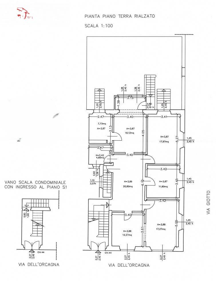 Completano la proprietà un doppio ingresso dal vano scala condominiale che permette di accedere separatamente ai due livelli, ed un ingresso pedonale esclusivo da via Giotto che conduce direttamente al giardino, regalando un accesso indipendente.