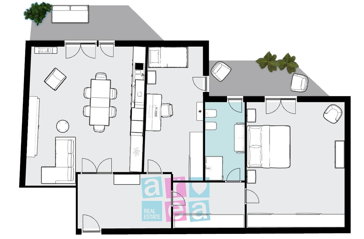 Gli spazi interni sono ben distribuiti e suddivisi in: ingresso, un salone con angolo cottura, una camera matrimoniale, una cameretta e un servizio.
