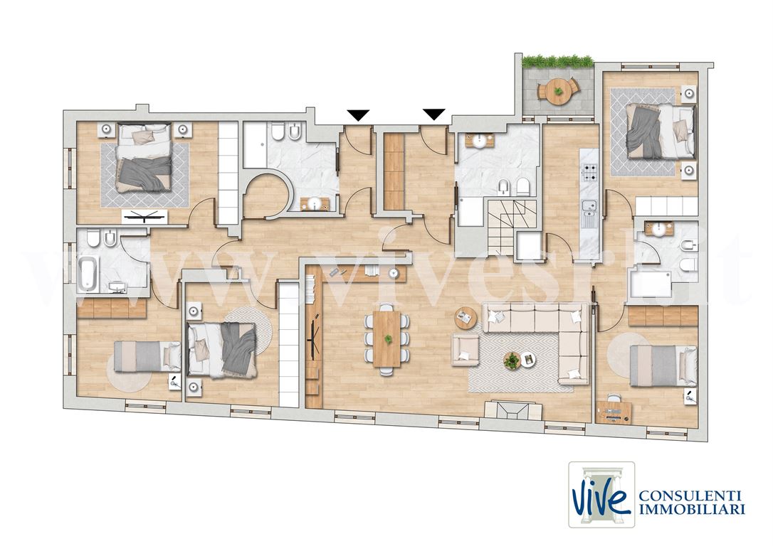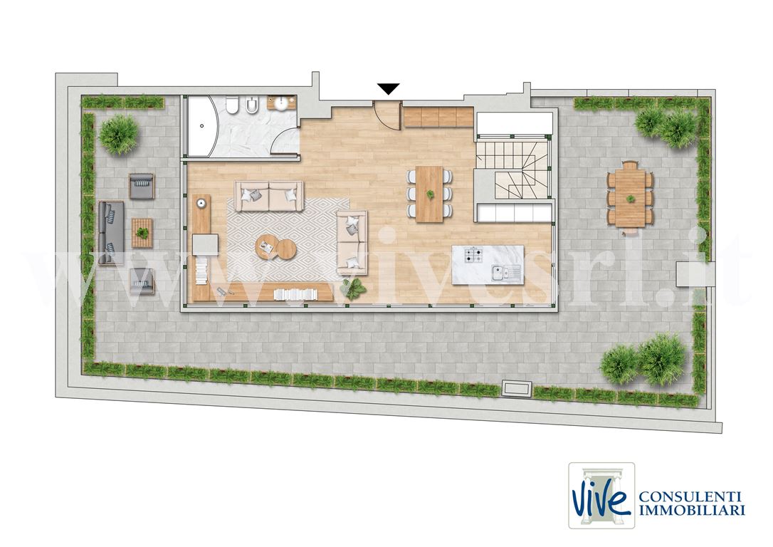 Vendesi prestigioso attico e superattico di mq. 300 ca con meravigliosa e ampia terrazza piantumata perimetrale all'immobile di mq. 130 ca. La proprietà si sviluppa sugli ultimi due piani di un moderno building degli anni 2000. Il terzo e ultimo piano si compone di ingresso, ampia zona living con bagno che si affaccia su uno strepitoso terrazzo attrezzato con un'area cucina professionale in acciaio circondata da piante e fioriture per il piacere di momenti conviviali. Attraverso una moderna scala in marmo con scorci vetrati del terrazzo, raggiungiamo il secondo piano composto da due ingressi, un grande soggiorno con zona pranzo con camino, cucina semiabitabile con loggia sulla corte interna, 5 camere da letto e 5 bagni. L'appartamento si presta ad un razionale frazionamento in due unità immobiliari grazie alla distribuzione attuale degli spazi. Completano la proprietà una cantina di pertinenza.