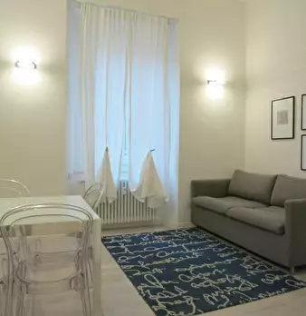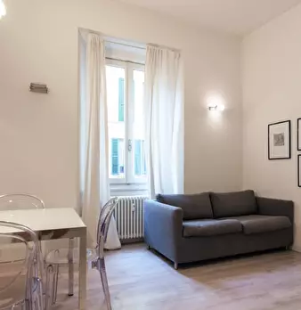 Questo appartamento arredato con una camera da letto nel pittoresco quartiere Brera di Milano è u...
