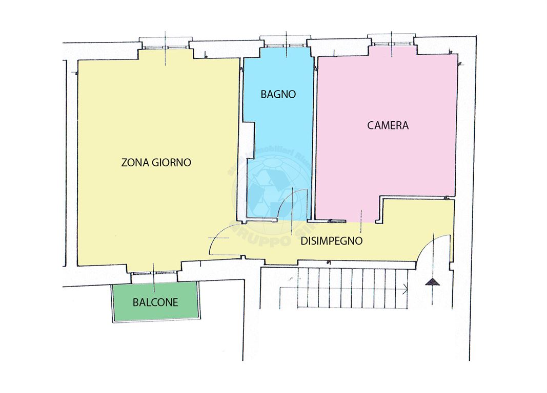 L'abitazione si compone di una zona giorno con cucina a vista e balcone, un disimpegno, una camera matrimoniale e al bagno finestrato, adatta per essere abitata da massimo due persone.