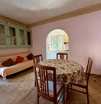 L'immobile, composto da tre vani, è caratterizzato da ottime finiture rustiche in stile Toscano e camino, con suggestive travi a vista che ne esaltano il calore. L'accesso avviene tramite un grazioso balconcino e scale esterne, che conducono direttamente all'ingresso.