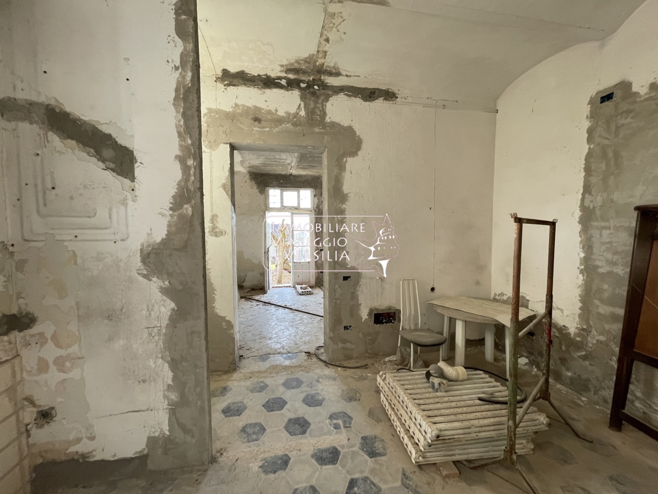 L'immobile è completamente da ristrutturare ma mantiene i materiali originali come per esempio i i pavimenti in graniglia con motivi geometrici e floreali.
