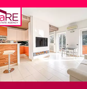L'appartamento, arredato con gusto e cura nei dettagli, si compone di un ampio e luminoso soggiorno, una cucina a vista, due camere da letto spaziose, due bagni moderni e due balconi.