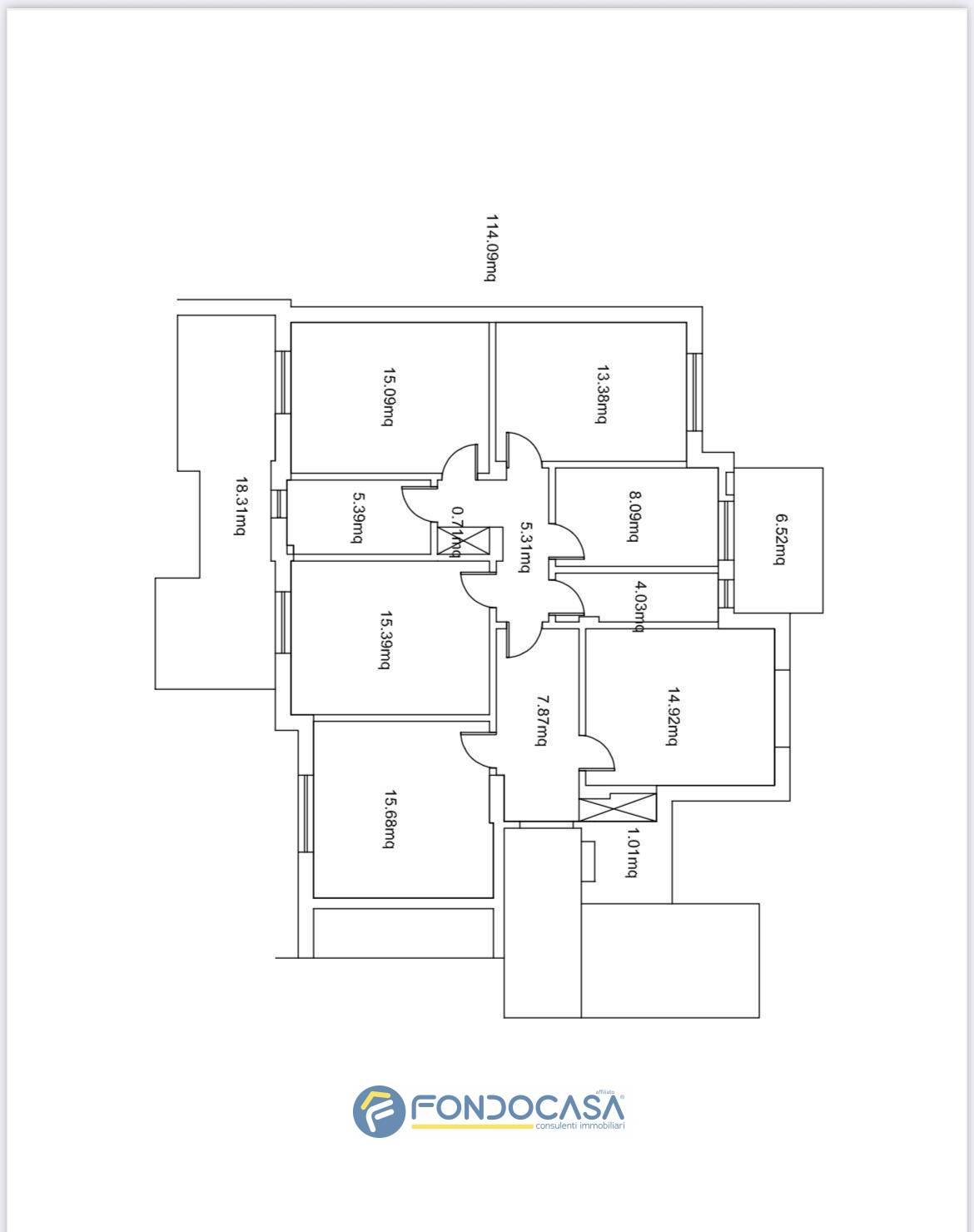 Situato al primo piano di una palazzina di tre piani, l'immobile dispone di una metratura calpestabile di 115 m² e si compone di 5 locali, di cui 3 camere da letto e 2 bagni.