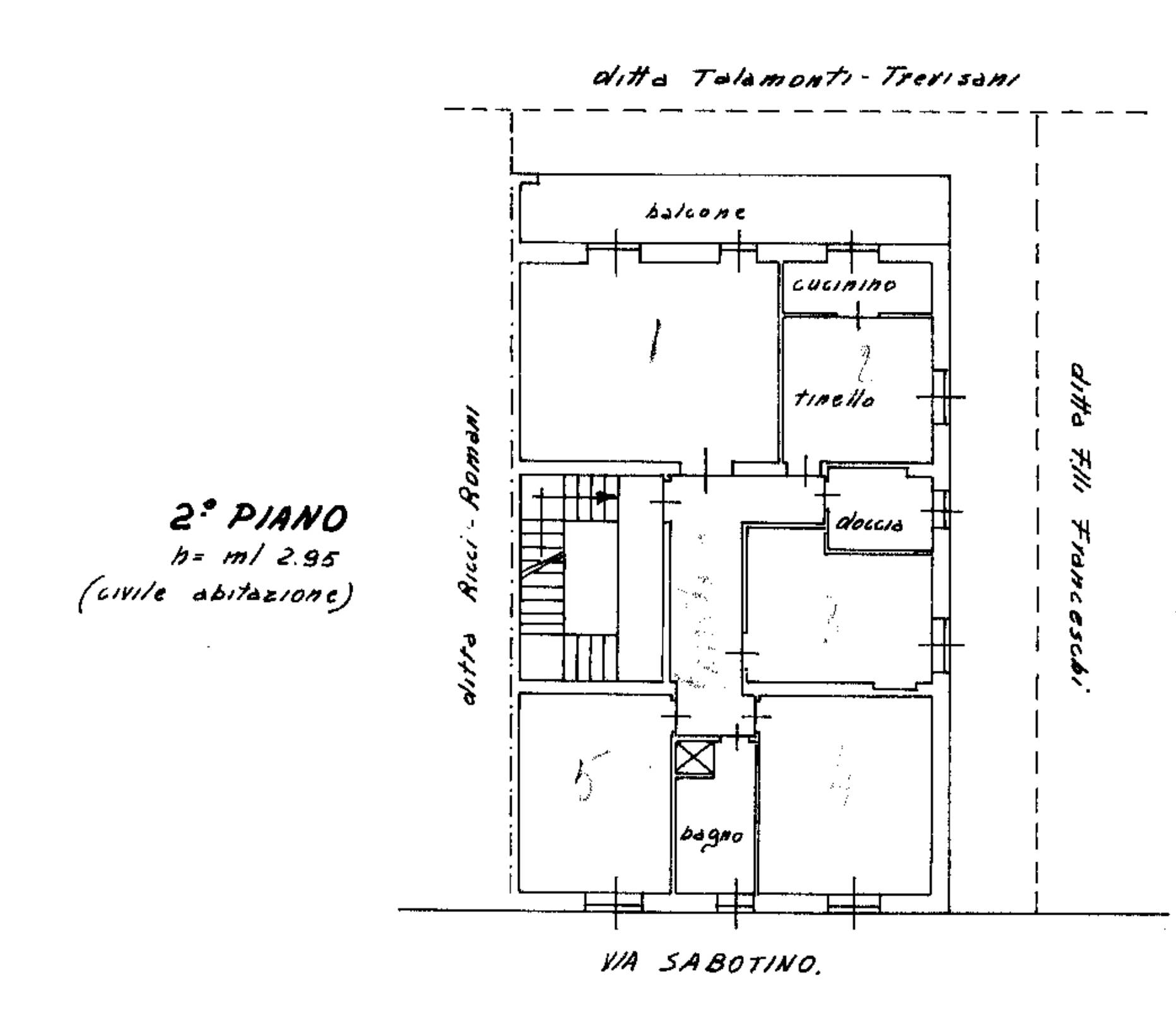 Appartamento al Piano Secondo, delle dimensioni di 135 mq. circa, composto da ingresso, ampio soggiorno, cucina abitabile con retro-cucina, 3 camere da letto matrimoniali, 2 bagni e balcone di 16 mq. circa.