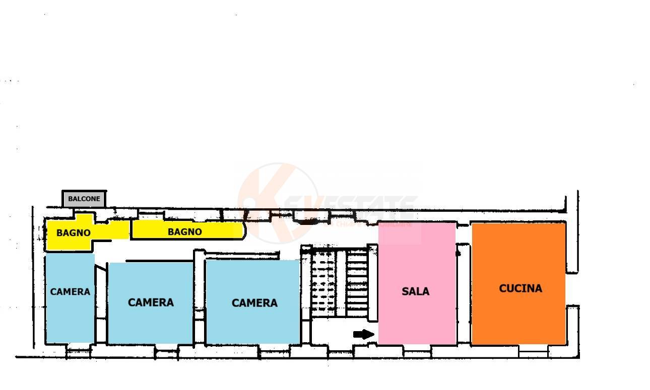 Centro storico, Via Luzzatti, terzo piano senza ascensore, tre camere, doppi servizi.
