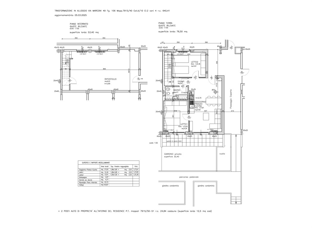 Attualmente l'immobile ha destinazione d'uso ufficio, viene posto in vendita con cambio di destinazione d'uso a residenziale da effettuare prima del rogito. L'immobile viene venduto allo stato di fatto. In zona semicentrale in complesso immobiliare degli anni 80 prevalentemente ad uso residenziale ufficio di mq. 76 così suddiviso: ingresso indipendente posto al piano terra composto da 3 vani, bagno con annesso giardino di mq. 34, collegato da scala interna al piano seminterrato di mq. 53 luminoso archivio. Attualmente l’ufficio è suddiviso con pareti mobili, si trova in buono stato di manutenzione è dotato di impianto elettrico-luci e impianto di riscaldamento autonomo. E' incluso un box al piano seminterrato. Il contesto è dotato di un’ampia disponibilità di parcheggio ad uso pubblico. Vende Società.
