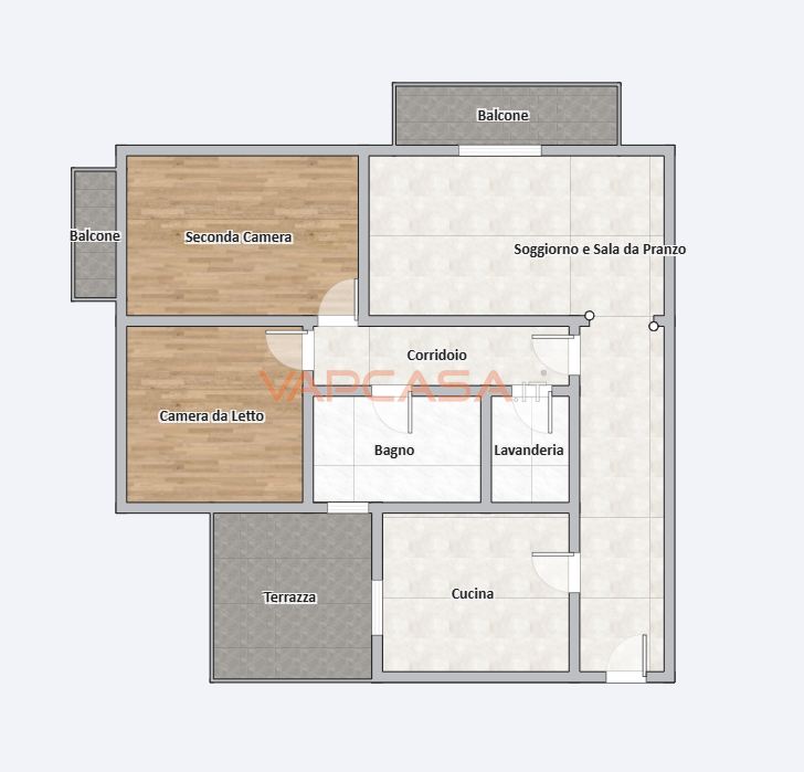 Il soggiorno è separato e ben dimensionato, perfetto per la vita quotidiana. La zona notte è composta da due camere da letto, entrambe con balcone, che garantiscono luminosità e sfogo esterno. Completa la proprietà un bagno finestrato e un pratico ripostiglio.