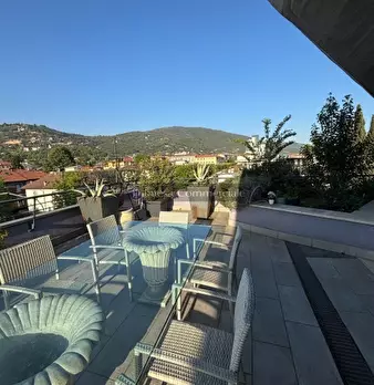 La terrazza principale è stata staticamente armata per accogliere una grande vasca idromassaggio riscaldata per 6 persone, dotata di ampio tendone solare elettrico, pavimentazioni in gres galleggiante, area prazo e salotto esterni, piantumazione con irrigazione automatica.