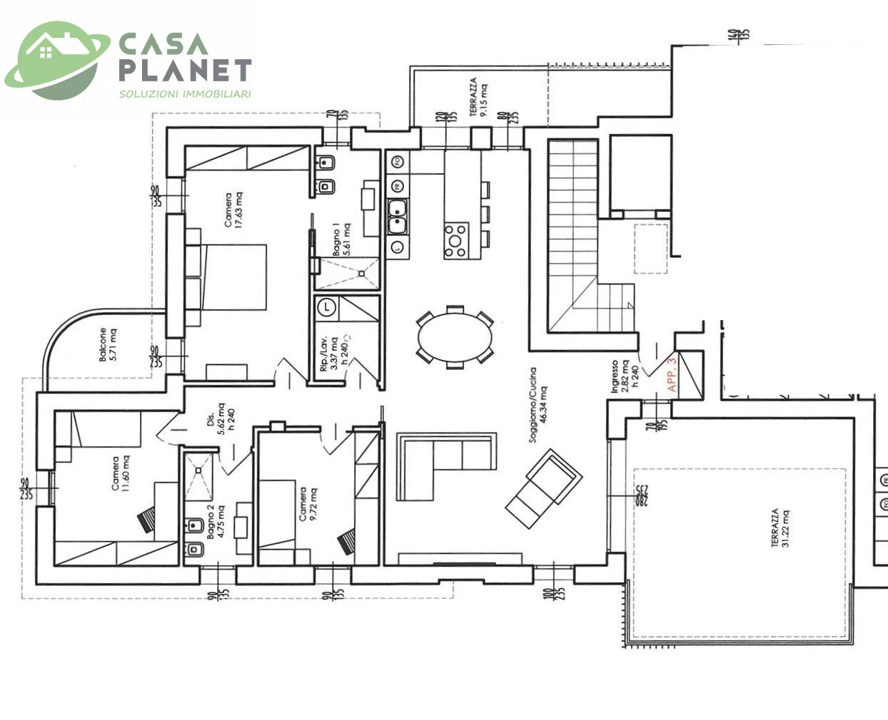 Per informazioni e prenotazioni su questo bell'appartamento di tipo attico in costruzione, chiamare agenzia Casa Planet di Mogliano Veneto al n. 041-8940162 e chiedere del rif. CP384-3