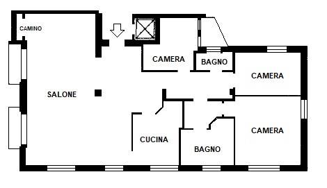 Appartamento signorile attualmente occupato ed ingombrato da mobili non presenti nelle foto, predisposto per avere la cucina in più posizioni a seconda della duttilità del salone con camino e doppia esposizione ad angolo.