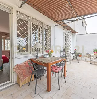 L'immobile è composto da un ingresso che si apre sul luminoso soggiorno doppio il quale da accesso ad una prima comoda terrazza, ideale per godere delle belle giornate romane all'insegna di un buon libro oppure ascoltando la propria musica preferita. La cucina abitabile è funzionale e ben illuminata, fornendo accesso diretto alla splendida terrazza principale di circa 60 mq dotato di pergolato in legno: questo spazio offre una estensione molto funzionale alla casa da poter sfruttare per quasi tutto l'anno, rendendola molto appetibile. Immaginate i vari e piacevolissimi momenti di ritrovo tra amici o parenti, con pranzi e cene all'aperto potendo godere della bellissima vista panoramica sulla città mentre le conversazioni scorrono in tutta tranquillità e privacy.