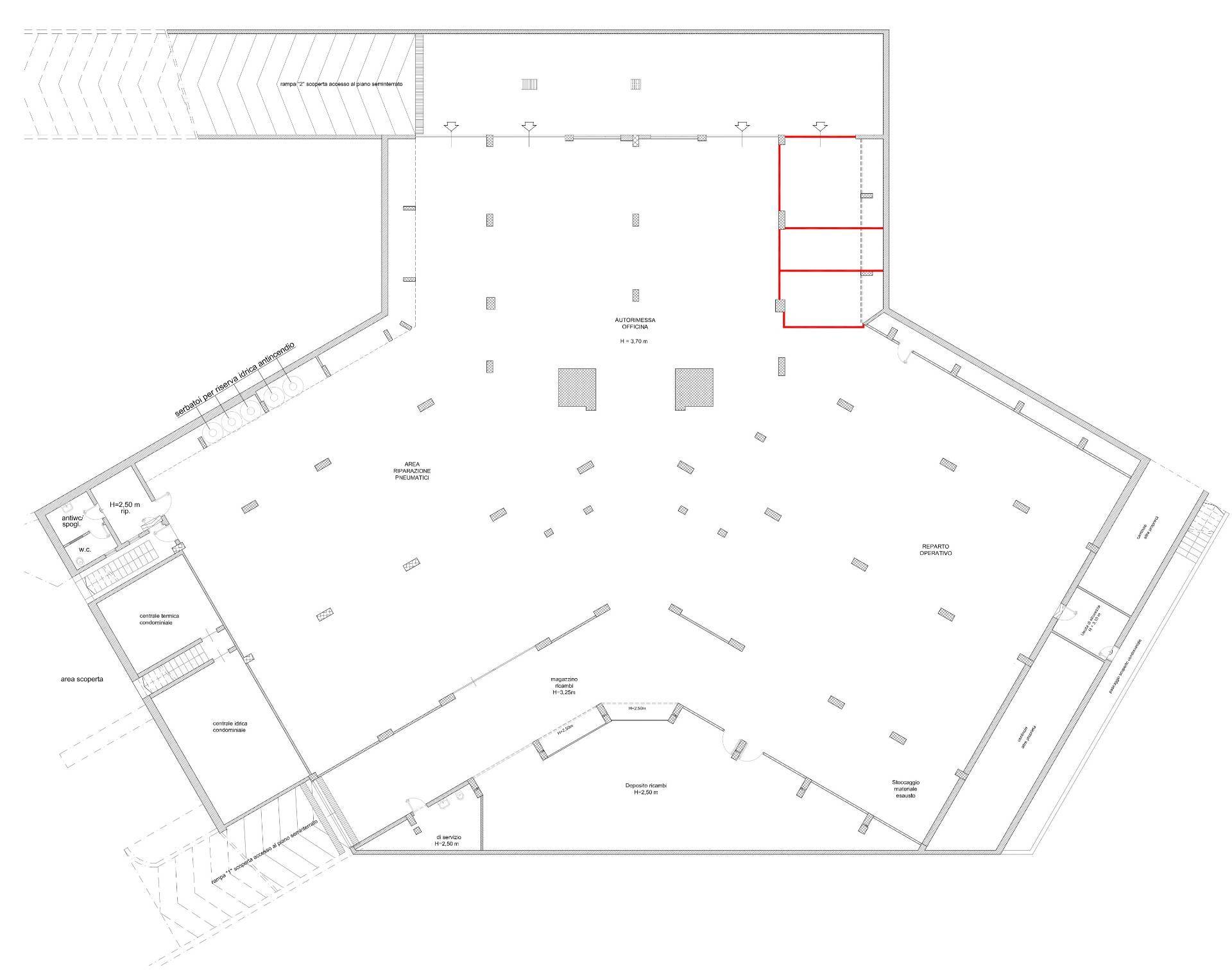 In Via Peucetia ang. Via Delle Medaglie D’Oro, confinante con ufficio postale, disponiamo in vendita di un garage munito di autorimessa perfettamente conforme alle norme urbanistiche, catastali e di antincendio. Doppia Rampa camionabile. Destinazione autorimessa: per n.75 auto e n.25 motociclette parcheggiate e zona commerciale. Sup. coperta mq. 1400 circa. Piazzale recintato mq. 600 circa.