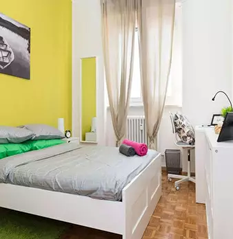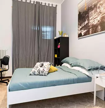 La stanza dispone di un letto una piazza, un armadio e una scrivania, creando uno spazio pensato per soddisfare le esigenze di studio e relax nel quartiere Baggio.