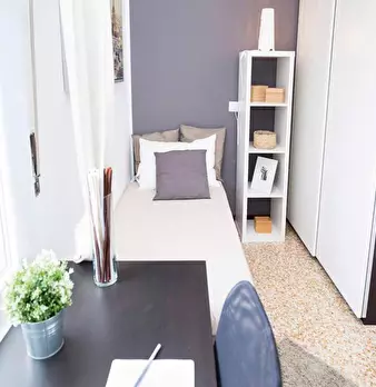Single room in a shared apartment, composed by 9 bedrooms and 3 bathrooms. Of about 13 sqm with a single bed and a work station. With wifi, dishwasher, washing machine. Energy class: E, IPE 106.81 Kwh/Sqm year.