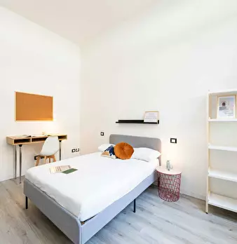 Single room in a shared apartment, composed by 7 bedrooms and 3 bathrooms. Of about 10 sqm with a one and a half bed and a work station. With wifi, concierge services, dishwasher, washing machine. Energy class: C, IPE 133.85 Kwh/Sqm year.