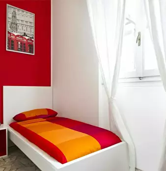 Single room in a shared apartment, composed by 8 bedrooms and 3 bathrooms. Of about 17 sqm with a one and a half bed and a work station. With wifi, concierge services, dishwasher, washing machine. Energy class: G, IPE 261.14 Kwh/Sqm year.