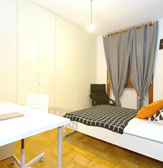 Single room in a shared apartment, composed by 4 bedrooms and 1 bathroom. Of about 17 sqm with a one and a half bed and a work station. With wifi, dishwasher, washing machine. Energy class: E, IPE 132.82 Kwh/Sqm year.