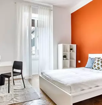 Questa camera con vista esterna in un appartamento condiviso con 7 camere da letto a Città Studi ...