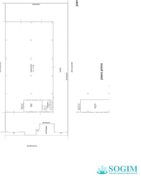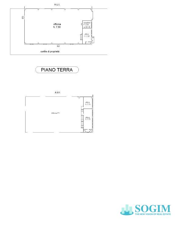 Completano la proprietà 300 mq di uffici distribuiti su due livelli, servizi/spogliatoi a presidio di entrambe le campate e un'area esterna di proprietà di 1.400 mq.
