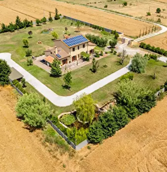Staccato dal fabbricato principale, un annesso agricolo completa la proprietà. Tutto intorno, ampio terreno agricolo, esteso per circa 44 ettari, in piccola parte ad oliveto.