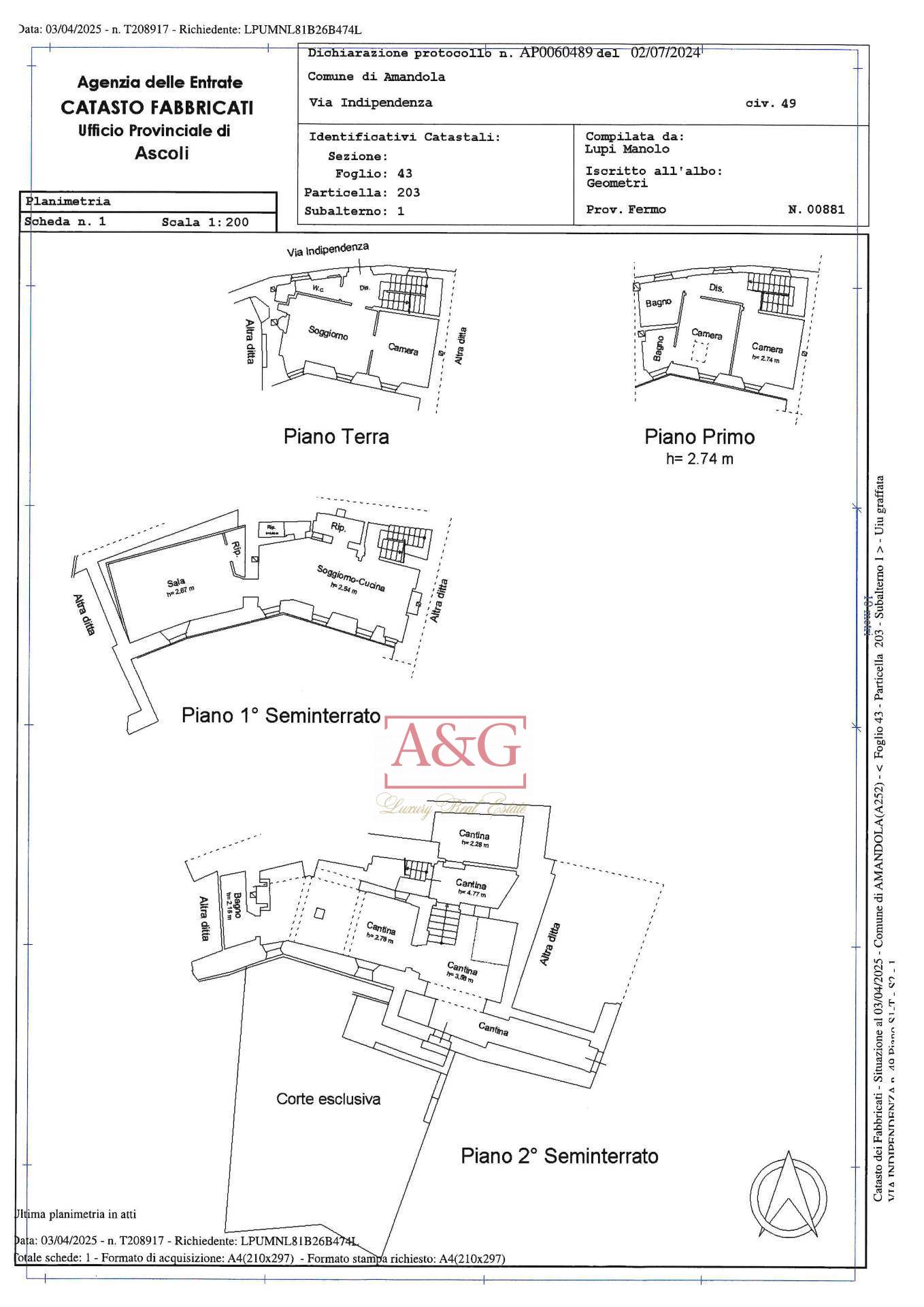 Piano secondo seminterrato: cantine, magazzini e un secondo atrio che conduce a una via parallela del centro storico e al giardino privato.