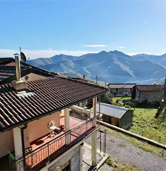 Il primo appartamento già ristrutturato e abitabile, è composto da ingresso, un luminoso soggiorno con stufa a pellet e accesso al terrazzo, cucina abitabile, due camere matrimoniali e bagno. Il terrazzo vivibile ha una bellissima vista panoramica sulla vallata sottostante.