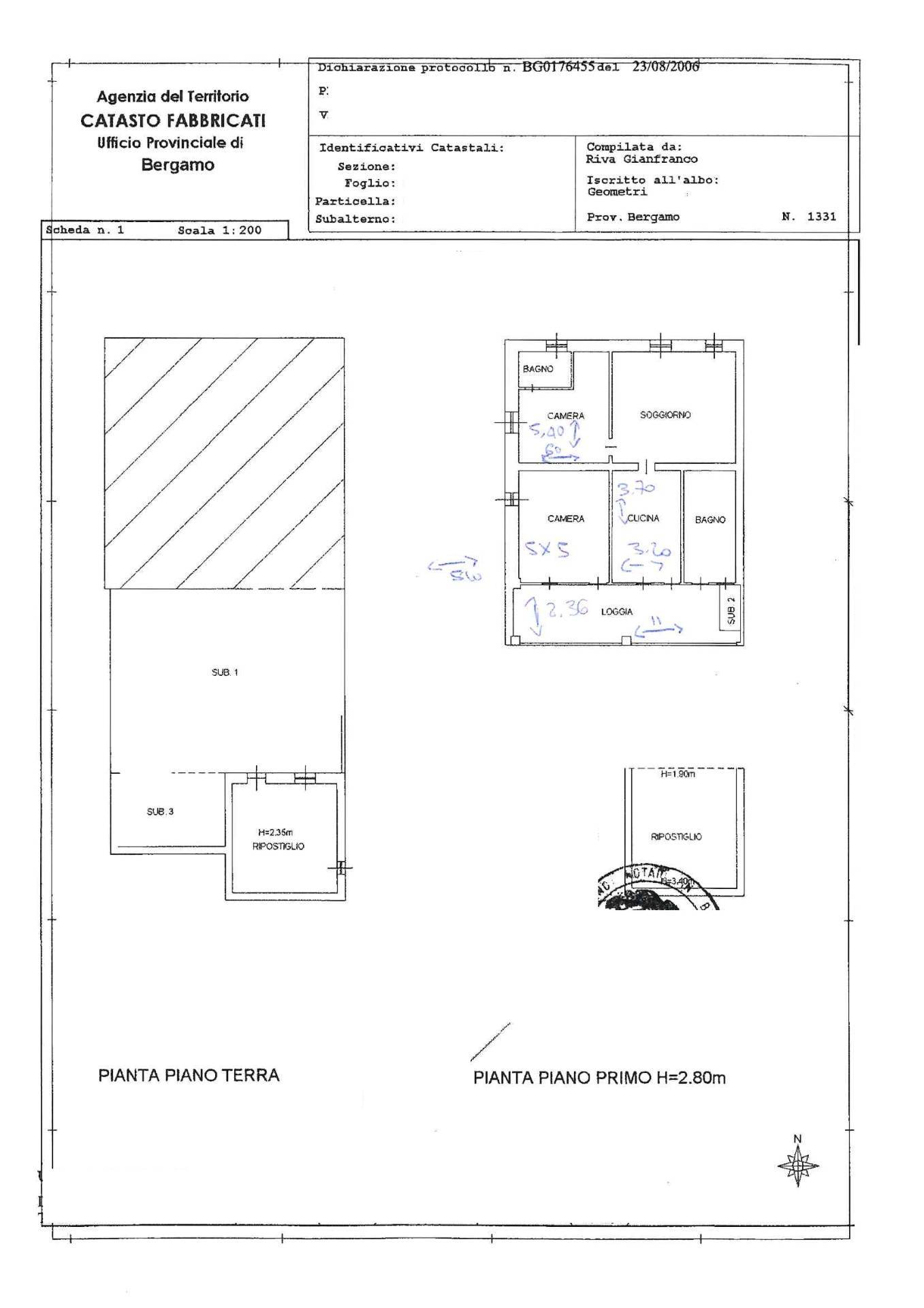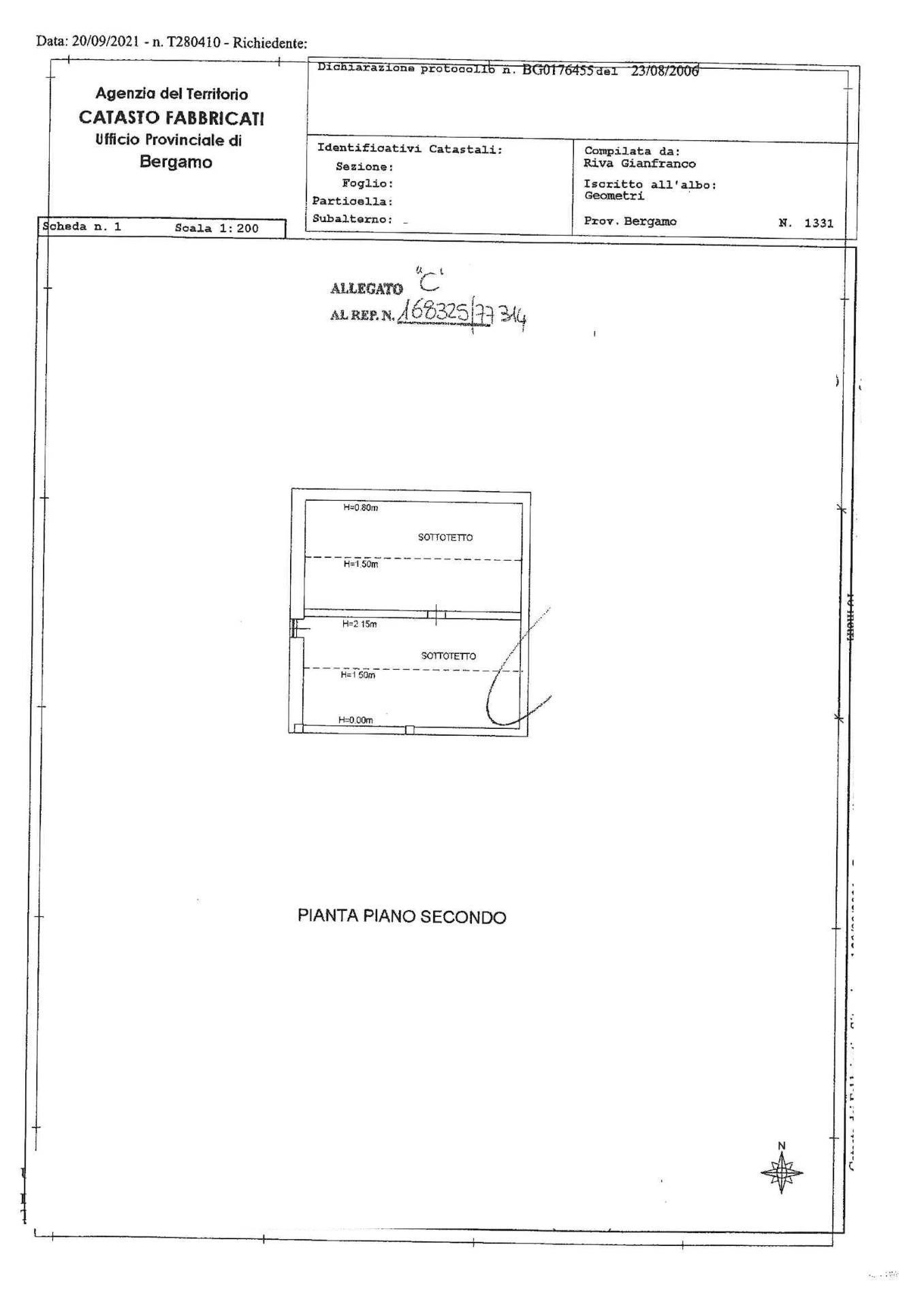 Piano Primo: 4 stanze tot 150 mq. + sottotetto colmo massimo h. 2.15 - colmo minimo 0.80 cm. - terrazzo di 35 mq.