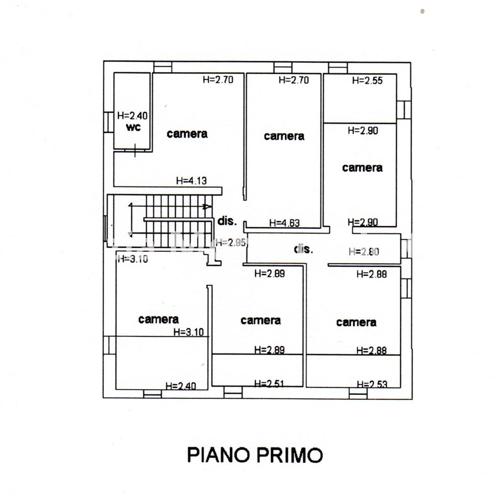L’immobile si sviluppa su due livelli: al piano terra pranzo/cucina, cantina, bagno e vari locali ad uso deposito; al piano primo sei camere e un ulteriore bagno.
