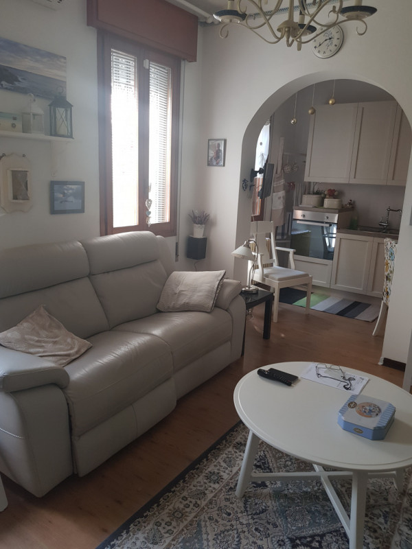 Zona living luminosa e accogliente comunicante con cucina separata e completamente attrezzata con accesso diretto al portico, ideale per cene all'aperto e momenti di relax.