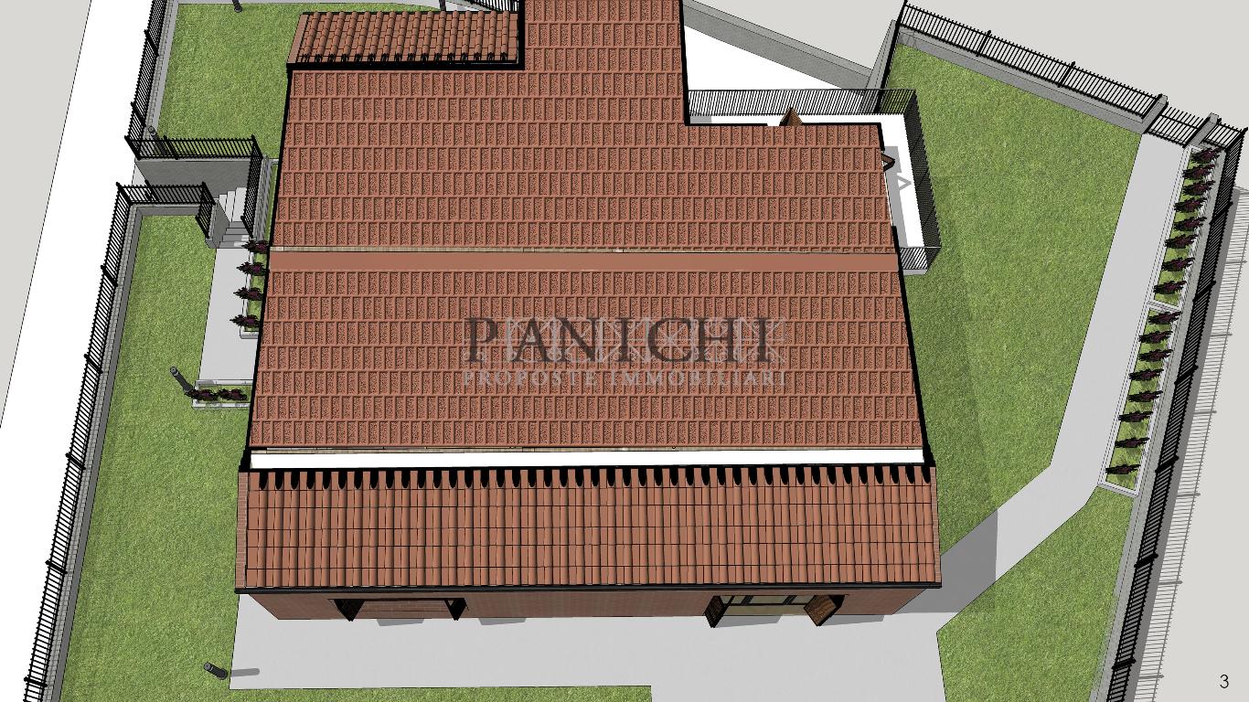 Sulla base della superficie del lotto di terreno è possibile realizzare villetta di circa 160 mq, predisposta al piano terra per ingresso, soggiorno-pranzo, cucina, disimpegno, studio, camera matrimoniale, cameretta e 2 bagni. Collegamento con terrazzo esterno e giardino oltre che con il garage al piano seminterrato, di circa 90 mq, predisposto oltre che per box auto anche per lavanderia, locale tecnico e wc. Al piano superiore, sempre accessibile da scala interna, si propone una grande mansarda con bagno, di circa 45 mq con terrazzo .