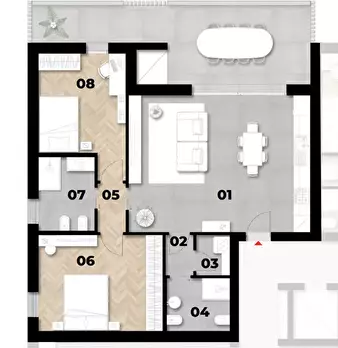 Scopri l'Unità 3, un raffinato appartamento al primo piano con una spaziosa terrazza abitabile di...