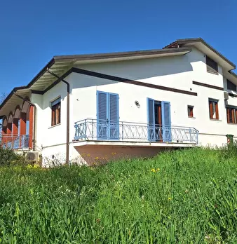 Elegante e collocata in bella zona verde molto piacevole, così si suddivide: al piano terra ampio ingresso, luminoso soggiorno, due grandi cucine una delle quali con caminetto a legna e l'altra con accesso al bel giardino, tinello/sala da pranzo, ripostiglio; al piano primo tre camere matrimoniali, camera singola, studio con balcone e bagno con finestra e doccia; al secondo ed ultimo piano tre ampi locali ad uso soffitta praticabile con soffitto con travi a vista con altezza minima di 1,86 m e massima di 3,40 m.