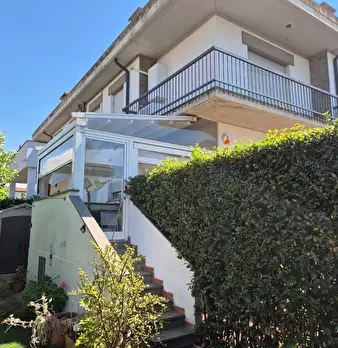 La casa è al piano primo, dalla scala comune, si attraversa un balcone e si accede ad una confortevole zona giorno collegata alla cucina pranzabile. Tramite un piccolo disimpegno, si raggiunge la zona notte, composta da una camera matrimoniale, una camera singola dotata di balcone con una splendida vista panoramica ed un bagno con finestra. Al piano terra, sotto all'appartamento, completa la proprietà l'autorimessa di 30 Mq collegata ad un ripostiglio - lavanderia di 8 Mq.