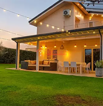 La villa è caratterizzata da un ampio giardino privato di ben 1.800 mq, ben curato con piante ornamentali e gazebo.