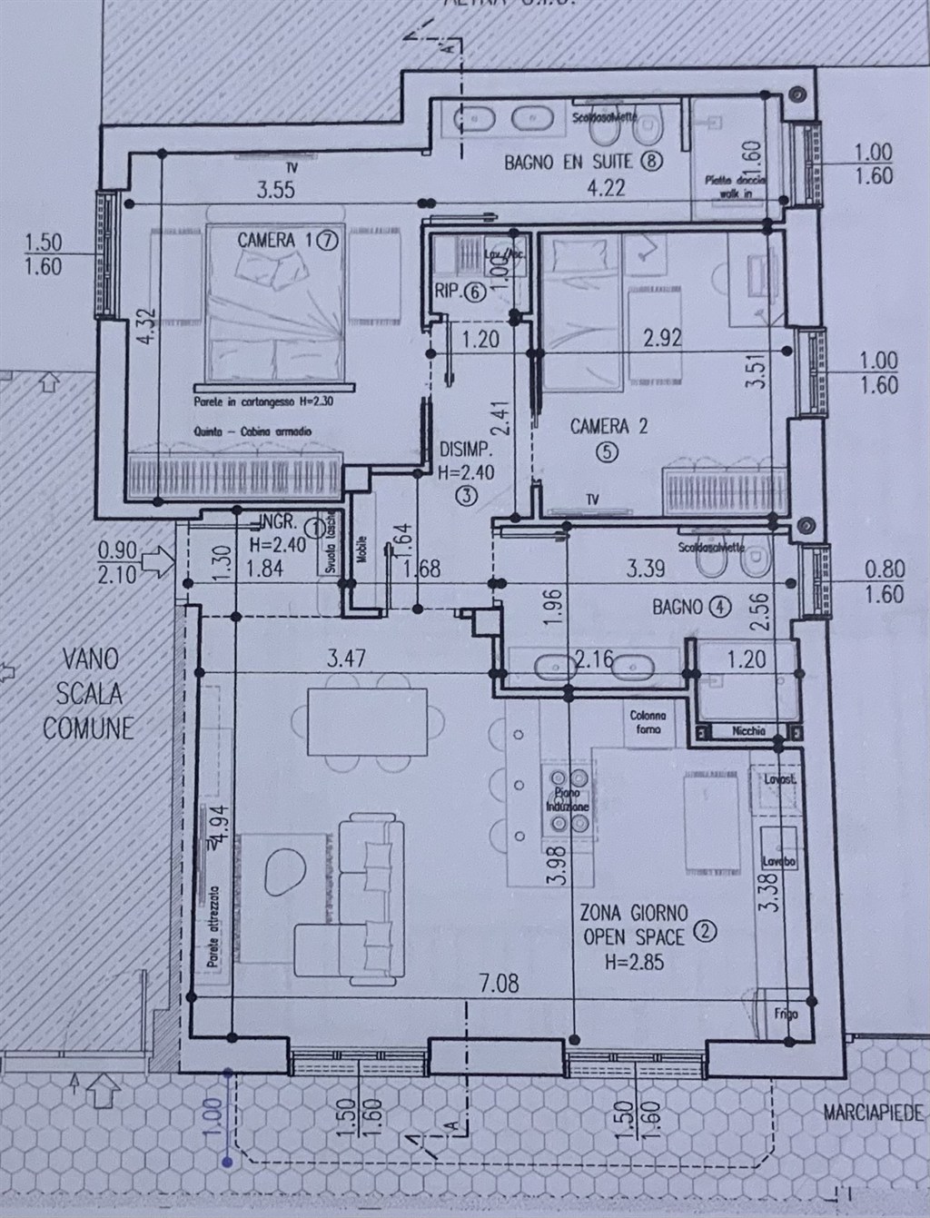 La soluzione è stata appena ristrutturata totalmente, ed è completa di: porta blindata, infissi in doppio vetro, taparelle elettrice, predisposizione aria condizionata, predisposizione allarme.