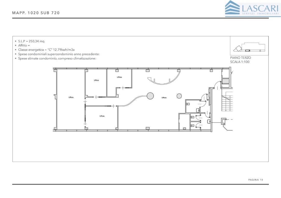Posizione interessante, in prossimità dell'aeroporto di Orio al Serio, fronte autostrada, all'interno di tre distinti edifici direzionali disposti su più livelli, è disponibile al 3° piano, scala A, un ufficio arredato di 250 mq. L'ufficio è composto da un ampio open space e quattro vani separati, blocco servizi comprensivo di accesso per disabili. Viene consegnato con pavimento flottante, cablaggio, impianto elettrico-luci, impianto di riscaldamento-raffrescamento con rilevatori di consumo e trattamento dell'aria primaria. Sono disponibili posti auto coperti riservati e un'ampia area di parcheggio privato ad uso pubblico.