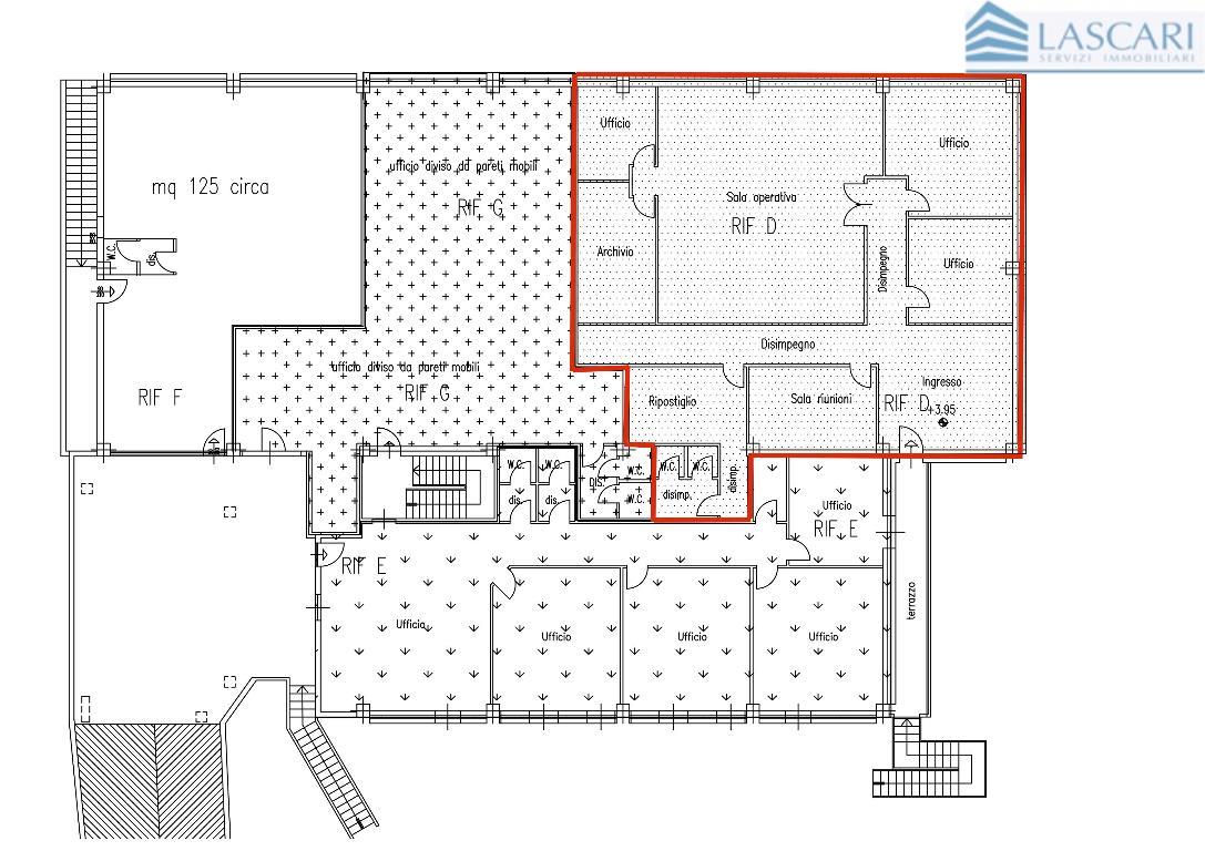 Servito dall'asse interurbano, al confine con Ponte San Pietro in complesso immobiliare di buona immagine composto da uffici e laboratori, è disponibile ufficio di mq. 255 posto al piano primo con ingresso indipendente. L'unità immobiliare è composta da ingresso-reception, al centro ampio open space, 3 vani, sala riunioni, archivio, ripostiglio e doppi servizi. L'ufficio in ottimo stato di manutenzione, è dotato pavimento flottante, controsoffitto con corpi illuminanti, impianto elettrico a norma, riscaldamento-raffrescamento autonomo con pompa di calore. Sono inclusi n. 4 posti auto nell'area cortilizia. Canone annuo € 22.000 oltre IVA. Buona disponibilità di parcheggio pubblico.