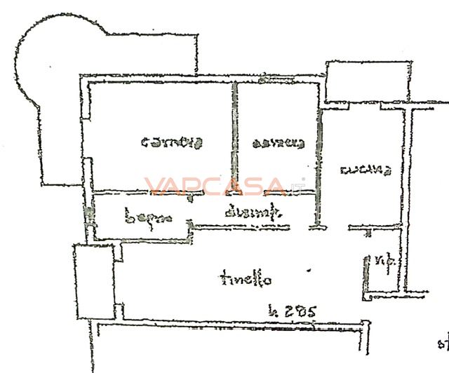 L’immobile è un trilocale composto da cucina abitabile, due camere matrimoniali e bagno con vasca, oltre a tre ampie balconate che garantiscono luminosità e sfoghi esterni.
