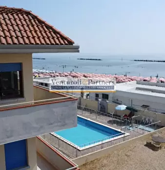La soluzione si trova in un quartiere elegante che è stato recentemente oggetto di intervento di riqualificazione in ogni unità immobiliare, a partire dal cappotto esterno, tinteggiatura delle facciate, nuovi profili e isolamento esterno; diversi servizi sono a disposizione del contesto, servizio di bus-navetta che porta alla spiaggia disponibile gratuitamente ogni 10 minuti, un resort con piscina, ristorante, e bar di fronte allo stabile ad uso gratuito dei residenti, il vialone alberato gode di diversi posti auto coperti liberi. Il residence è stato costruito nel 2013, presenta infatti ottime finiture, con infissi in pvc e alluminio, predisposizione ai pannelli fotovoltaici, chiusura automatizzata con tessera all'ingresso. Entrando nella proprietà ci accoglie il cortile esclusivo, ideale per pranzi e cene con amici e parenti magari dopo una giornata di mare; è completo di barbecue, tenda da sole; e mobile con area lavanderia indipendente ed esterna, in modo da non disturbare all'interno dell'abitazione. Entrando nella casa ci accoglie una curatissima zona giorno, con una magnifica cucina, super accessoriata, il tavolo con sgabelli, la zona living è completa di mobile tv, parete attrezzata su misura, e un divano letto estensibile. La zona notte è composta da una prima camera studiata ad hoc per un letto alla francese e la scrivania, la camera padronale con spazi decisamente comodi, e il bagno finestrato. L'immobile è completato da una terrazza nel retro che è stata chiusa a veranda e dove è possibile creare ua terza camera, o zona armadi e rispostigli.