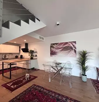 Con i suoi ampi spazi, l'immobile si sviluppa su due livelli per un totale di 158 mq ed offre finiture di pregio che ne esaltano il comfort. Al secondo piano trovate un luminoso soggiorno con caminetto a legna (32 mq) ed accesso diretto ad uno splendido terrazzo di oltre 30 mq tramite un ampio finestrone scorrevole; la cucina è separata ed abitabile (15 mq), dotata di dispensa a muro. Completa questo livello un bagno con doccia idromassaggio e una camera/studio affacciata sul secondo terrazzo.