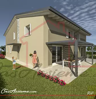 Situata nella frazione di Campagnalta nuova porzione di bifamiliare composta di: ingresso, soggiorno con angolo cottura di 41 mq, due bagni, lavanderia, quattro camere, disimpegno, garage, pompeiana e giardino privato di circa 250 mq. L'immobile dispone d'impianto di riscaldamento a pavimento con pompa di calore e fotovoltaico da 3 kw. Classe Energ A4 --- annuncio pubblicato con GESTIONALEIMMOBILIARE.it